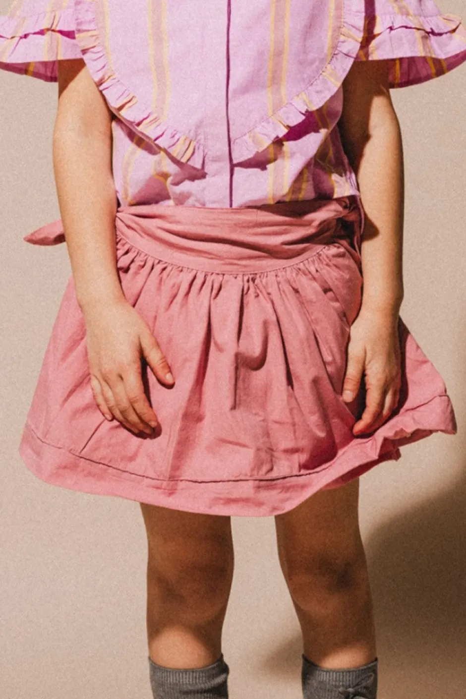 - Dit roze mini rokje is gemaakt van geweven katoenen stof