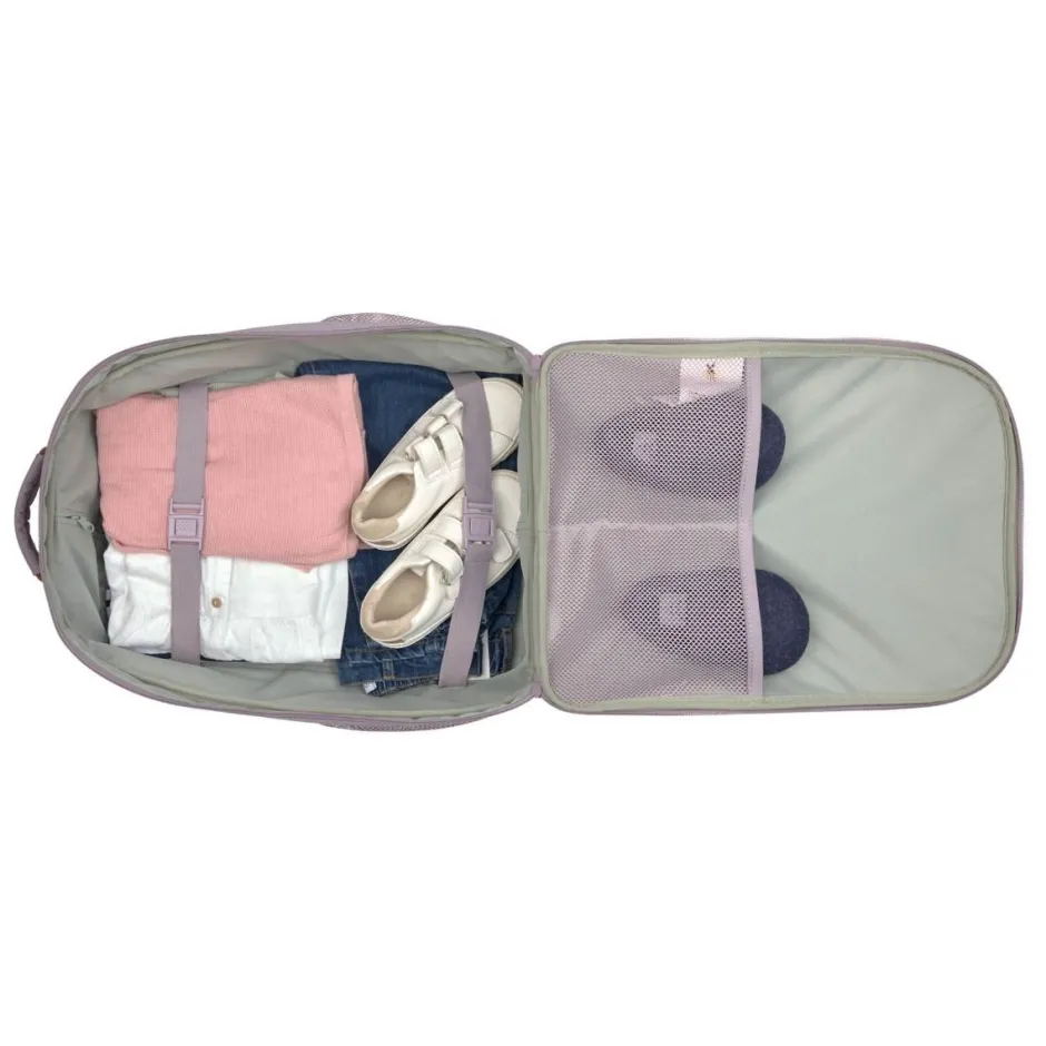 Ga op reis met je kids en deze vrolijke koffer van Lässig! De koffer is waterafstotend en heeft een groot vak met elastische riemen zodat de inhoud bij elkaar blijft. Dankzij de twee zijvakken en de rits aan de voorkant is er veel extra opbergruimte. De reiskoffer is lekker licht en dus perfect voor kleine reizigers!