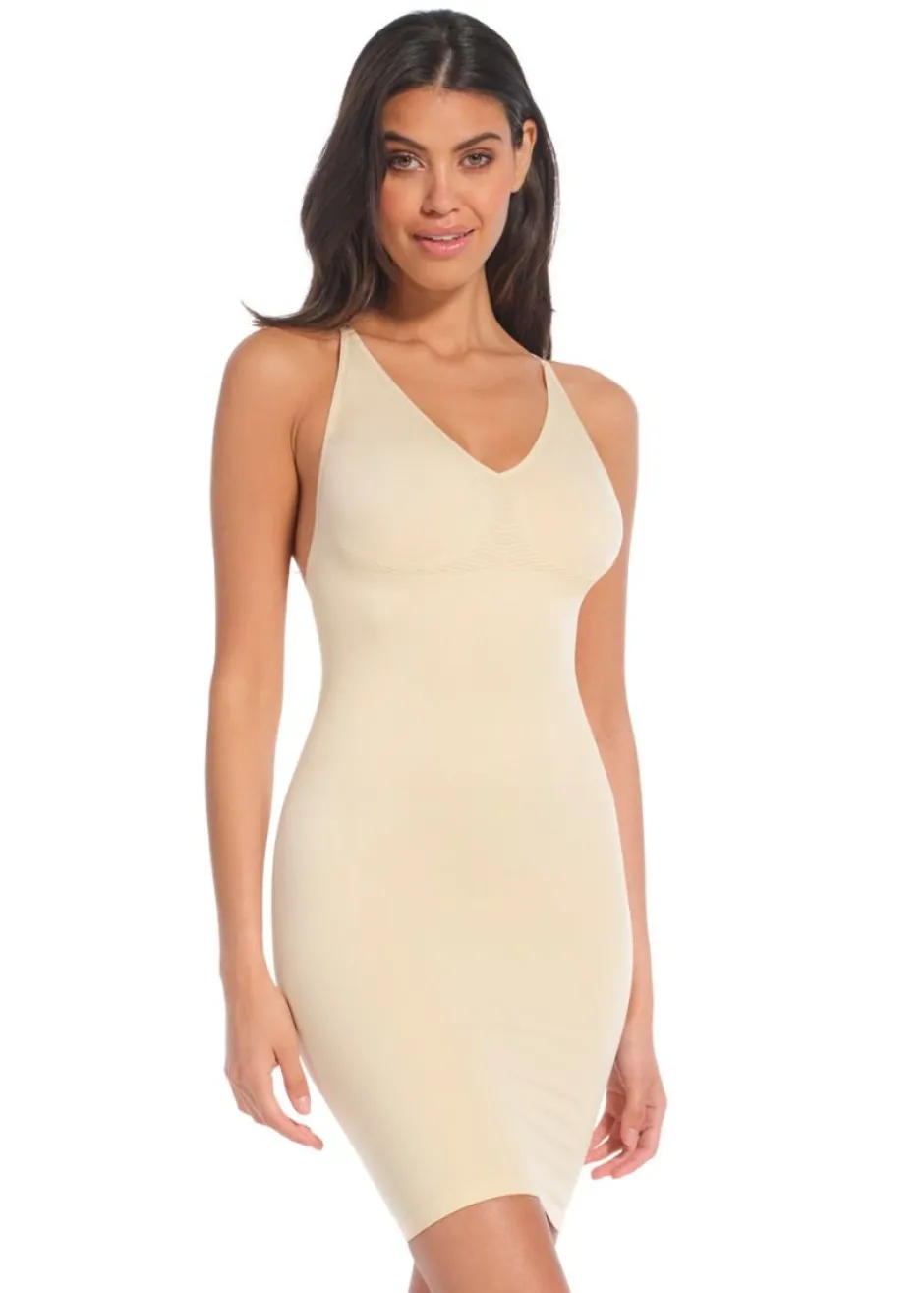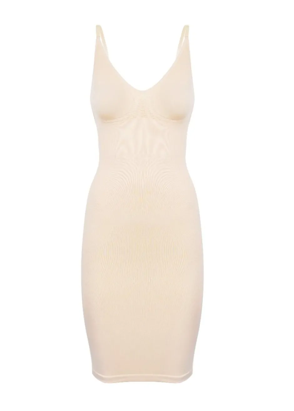 Deze low back/ low front dress is ontworpen voor onder jurkjes met een diep decollote en een lage rug! Deze jurk biedt een subtiele shaping rondom de buik en biedt ook ondersteuning, waardoor de jurk ideaal is onder jouw (zomer)jurkje. Dankzij de gladde stof is de jurk ook onzichtbaar. En het fijnste van alles: door de anti-rol siliconen zit de jurk ook nog eens heerlijk en kruipt hij niet omhoog. Kortom: zo’n eentje die je simpelweg in je kast moet hebben!