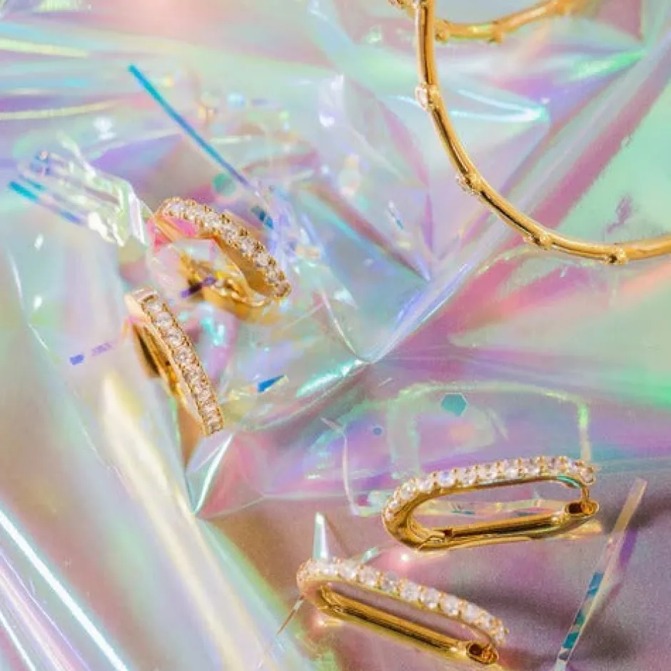 Deze ovale oorringen hebben een ovale vorm en heldere kristallen. De oorbellen zijn verkrijgbaar in het goud en zilver.