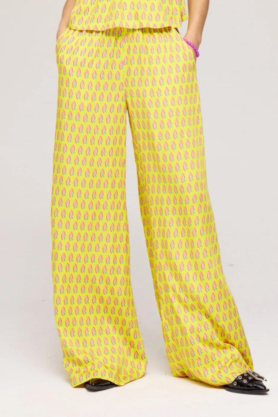 Deze vrolijke broek van Harper & Yve heeft een wide leg model