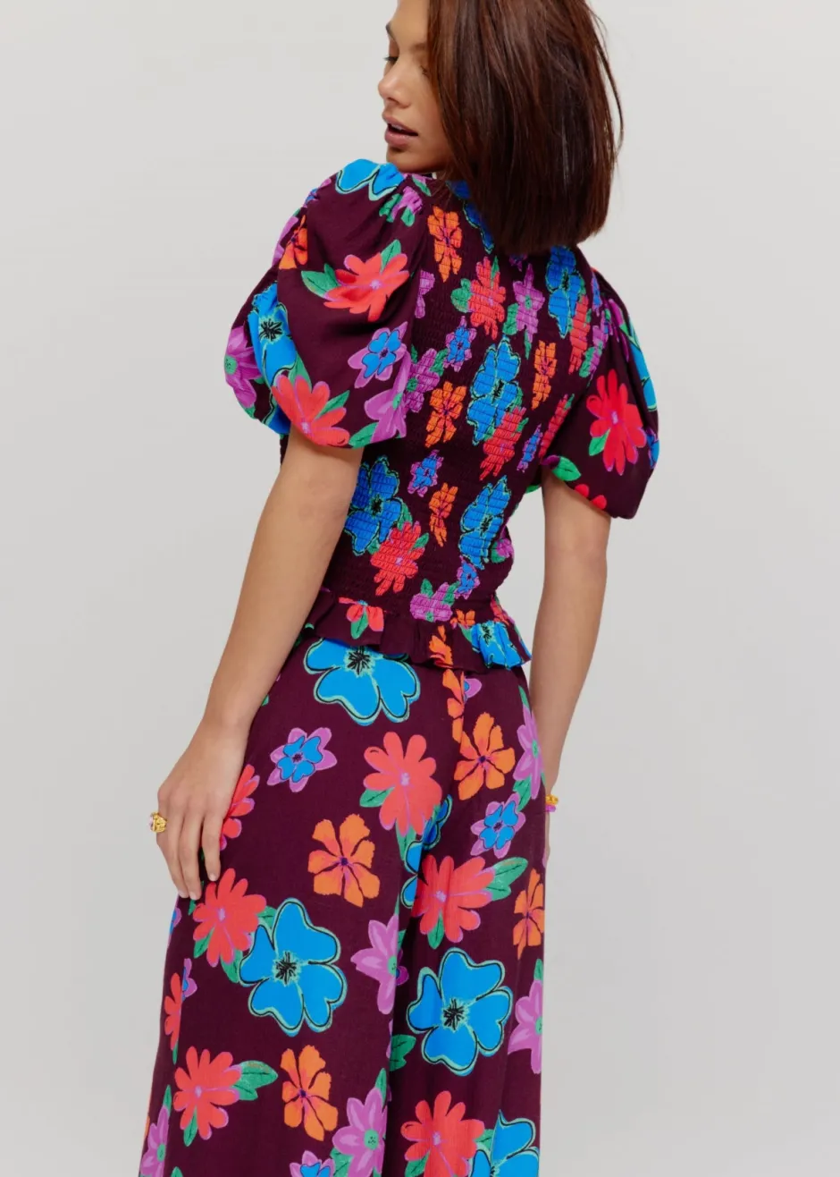 Deze mooie top van Harper & Yve heeft pofmouwen en een all-over bloemenprint
