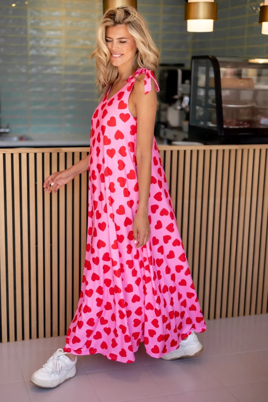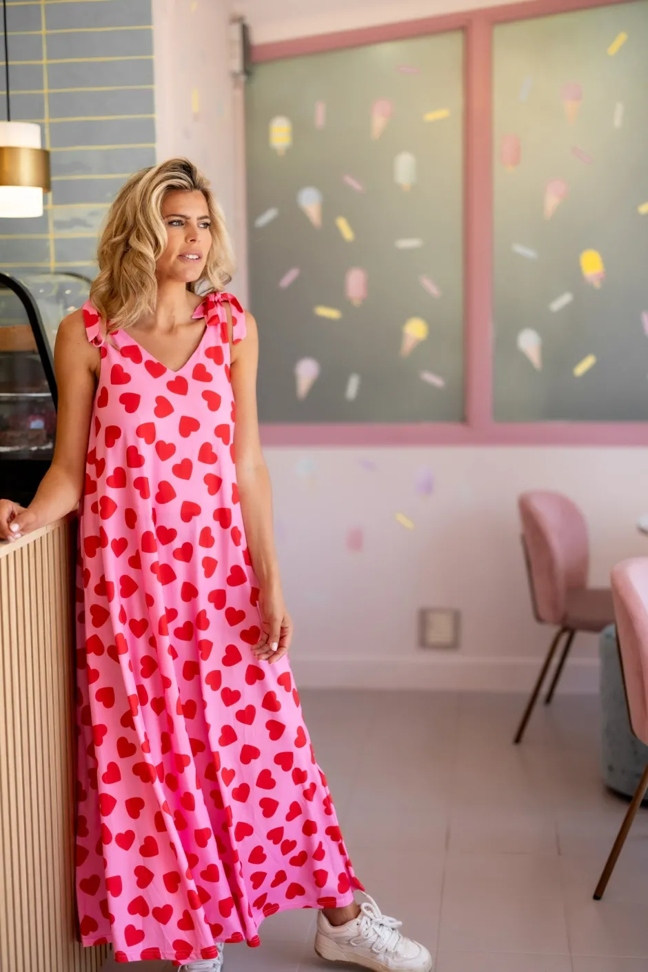 Deze roze jurk met hartjesprint is perfect voor warme dagen!