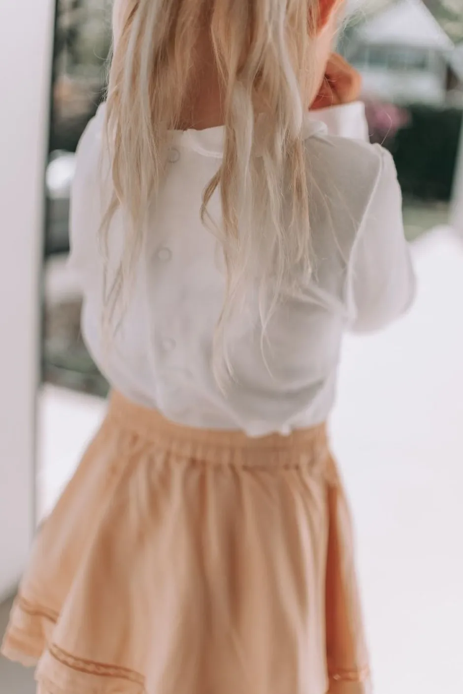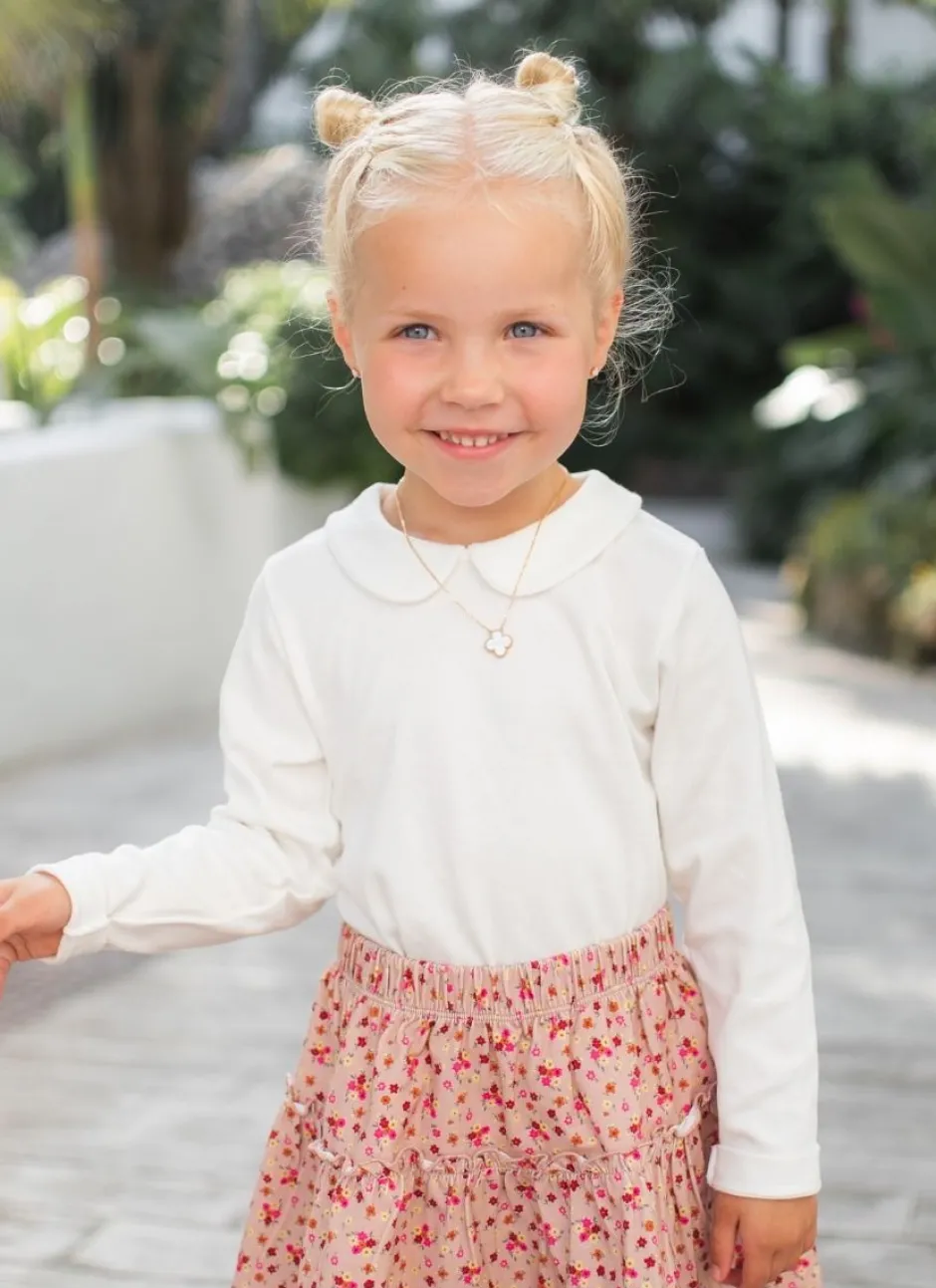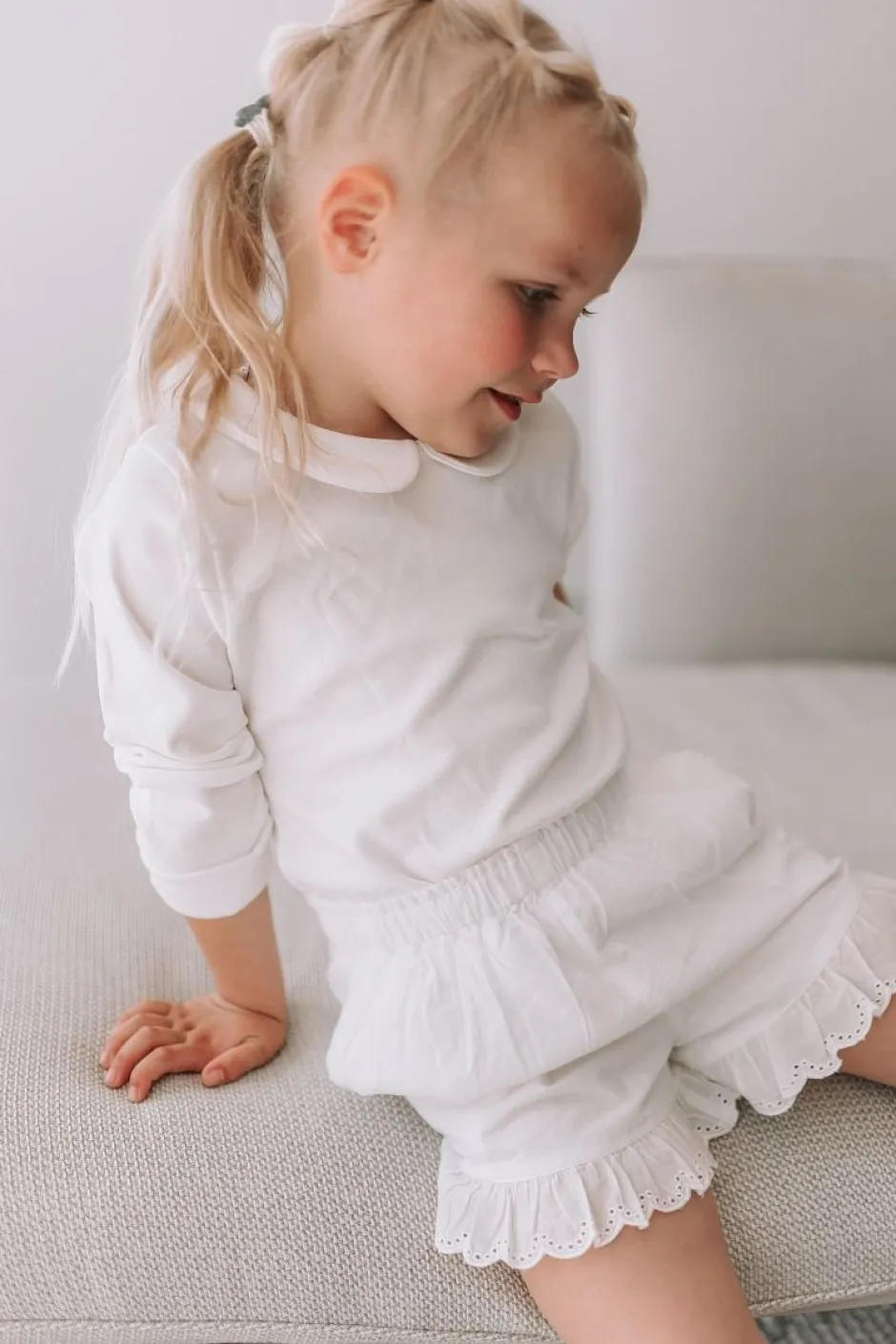 Dit zachte effen shirtje met een klassiek Peter Pan kraagje is op meerdere manieren te stylen! Draag het shirt bij een toffe flared broek en je hebt gelijk een hippe outfit, of draag het onder een lekkere dikke trui met een rokje en de outfit oogt ineens klassiek! Door het zachte katoen is het shirtje zowel prettig te dragen onder een trui (of tuinbroek) of los als item. Geschikt voor elk seizoen.