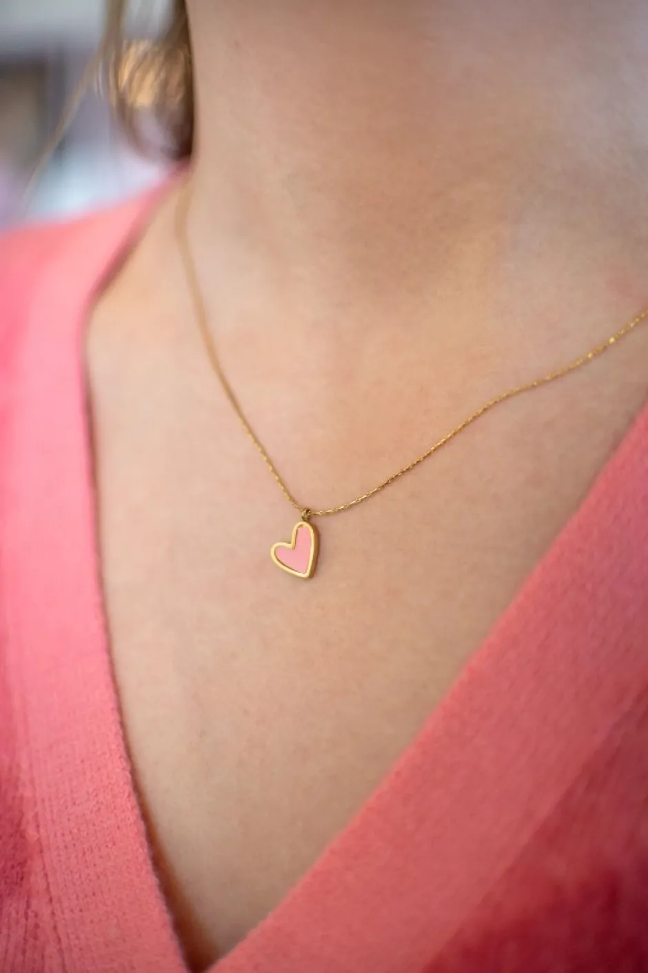 Dit dunne gouden kettinkje met roze hartje maakt jouw dagelijkse outfits helemaal af en is super leuk om te combineren met andere kettingen. Tip: ook perfect om cadeau te geven!