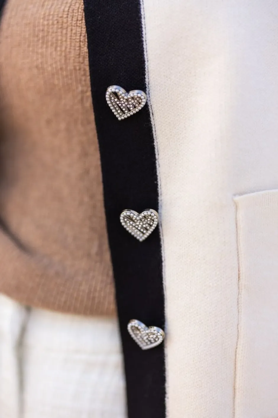 Stijlvol wit met zwart vestje en mooie zilveren hartjes knopen