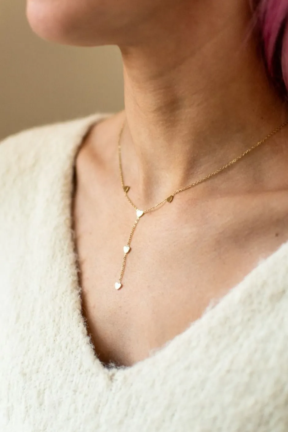 Dit dunne gouden kettinkje met vijf kleine hartjes eraan is een prachtige toevoeging aan elke outfit! …