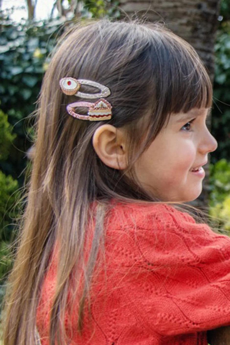 Hoe zoet zijn deze haarknipjes van Rockahula met taartjes erop! Ideaal om het haar van jouw baby of kids mee vast te zetten. Ook leuk om te combineren met andere haarknipjes of haarelastiekjes!