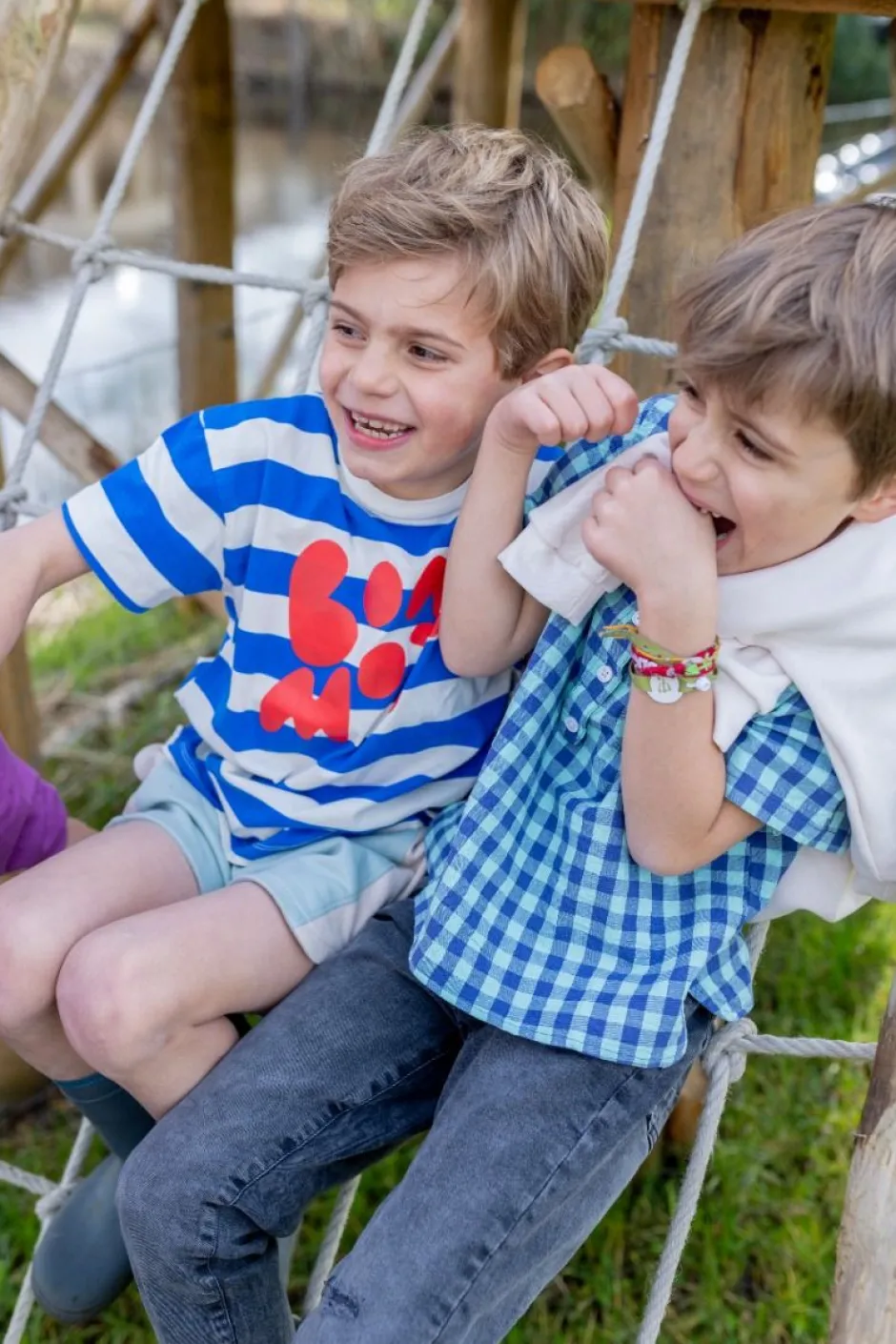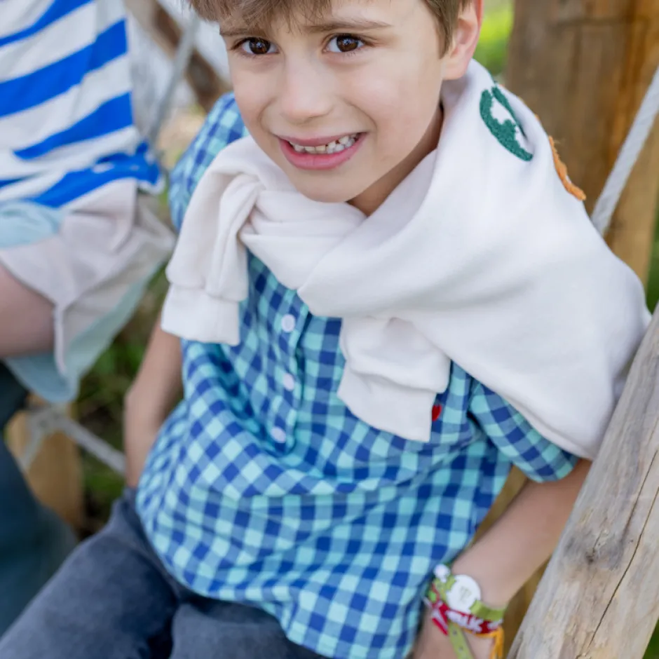 Dit blauw geblokte shirt van Wander & Wonder is een absolute must-have! Met zijn klassieke ronde hals en het opvallende rode detail van het merk op de borst, voegt dit shirt een leuke touch toe aan de outfit van jouw kind. Met dit shirt kan jouw kind stralend de zomer tegemoet gaan! Let the summer begin!