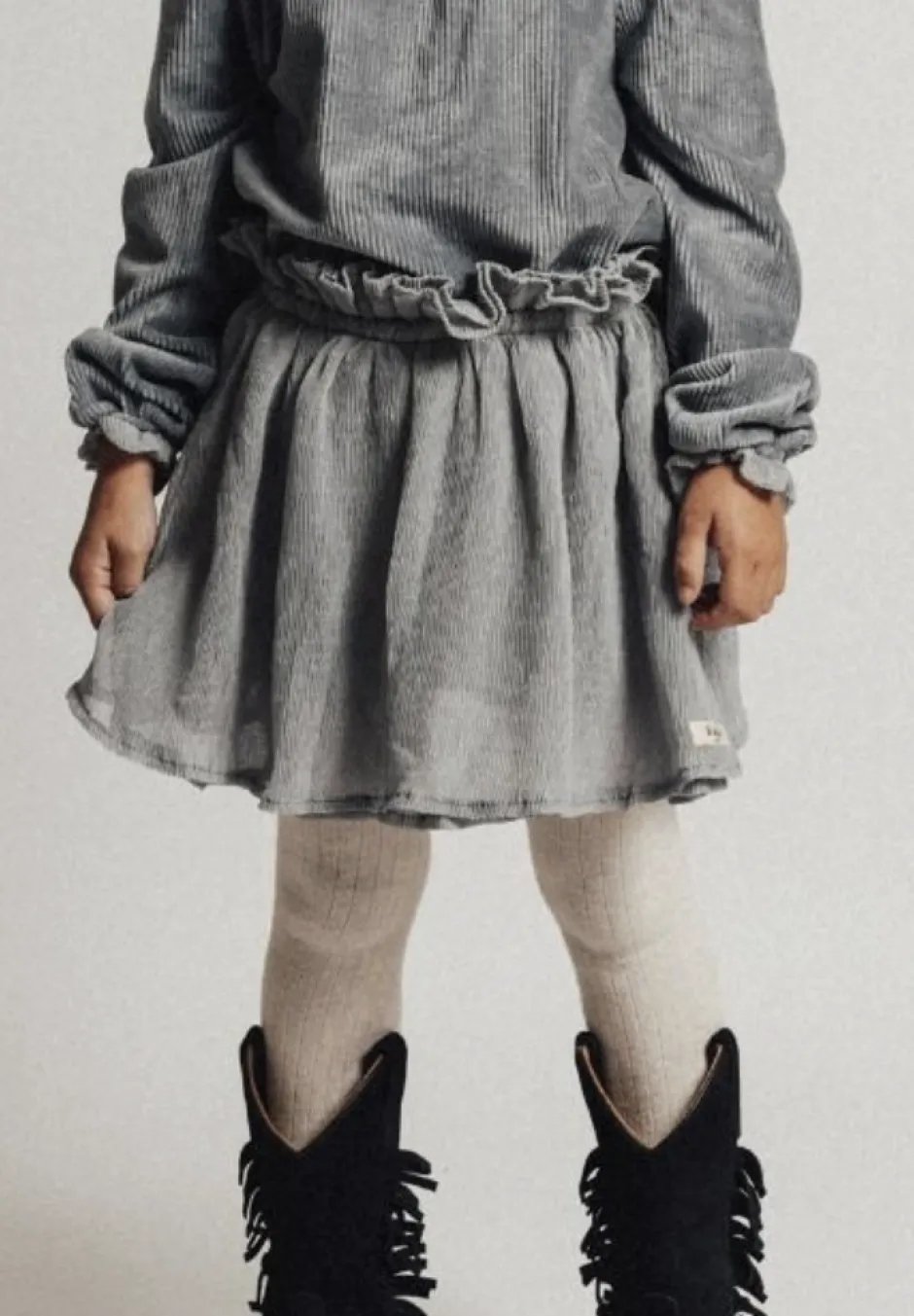 Dit grijze rokje van Baje Studio is tijdloos: in de winter te dragen met een leuke maillot en in de zomer met een sandaaltje! Het rokje is gemaakt van een mix van linnen, viscose en nylon. Dankzij de elastische band sluit de rok goed aan rondom de romp. Eindeloos combineren!