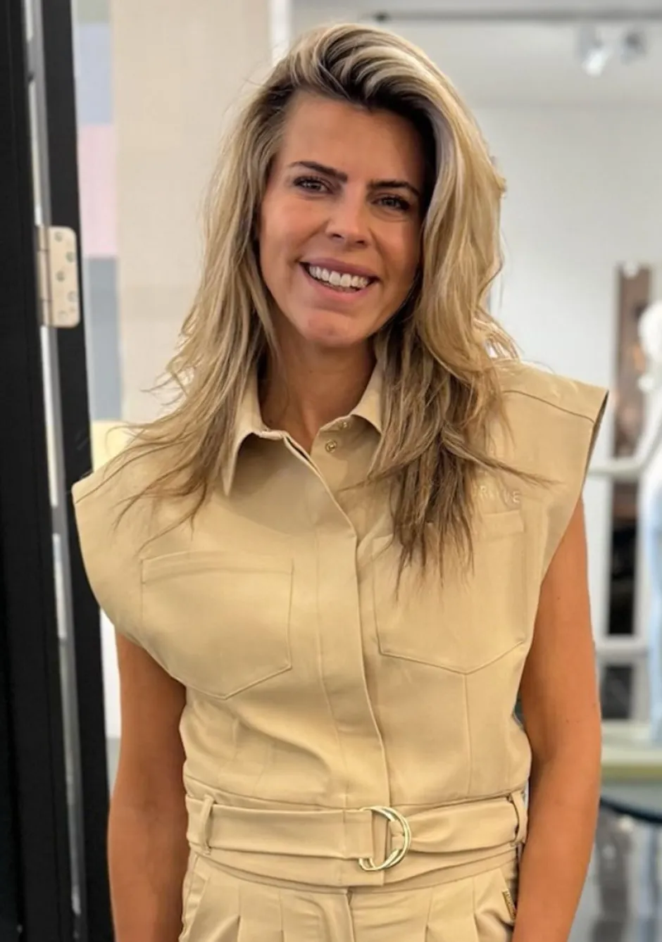 Deze beige gilet van Harper & Yve is een echte eyecatcher! De stoere schouderlijn en het getailleerde model met bijpassende riem geven een krachtige uitstraling. De kraag en de elegante afwerking zorgen voor een stijlvolle touch. Draag hem solo voor een gedurfde look of combineer met de bijpassende broek. Perfect om elke outfit een stijlvolle upgrade te geven!