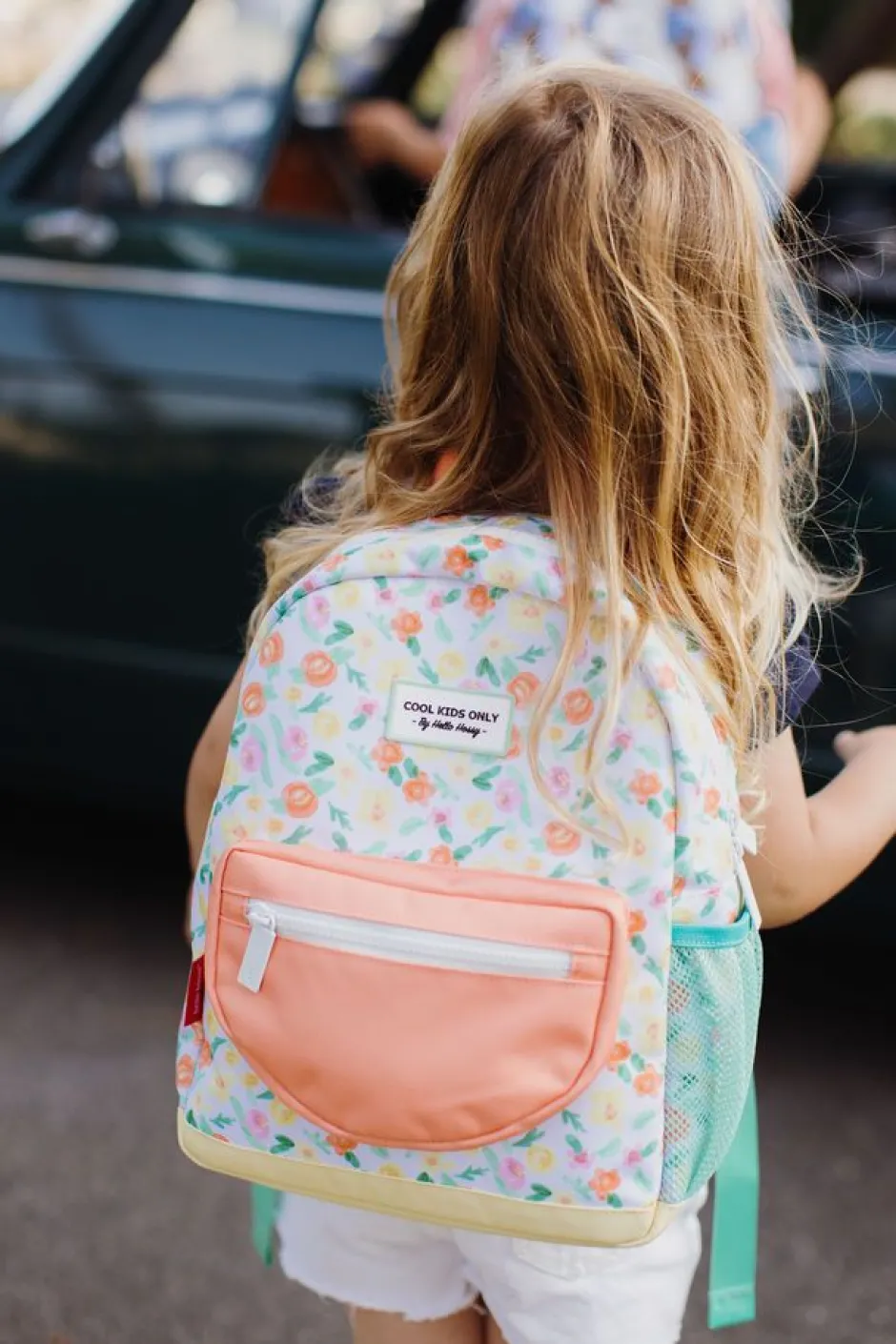 Wij zijn he-le-maal fan van deze rugzak van het merk Hello Hossy! De rugzak heeft een all-over roze, gele en oranje bloemetjes print. Echt super schattig voor je kleine meid. Naast de leuke print heeft de rugzak ook een praktisch voorvakje, zijvakje voor de drinkbeker en een naamlabel aan de binnenkant.