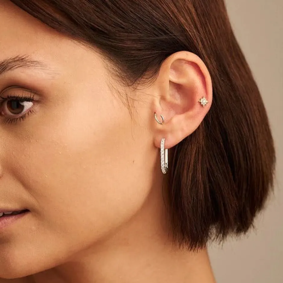 Deze ovale oorringen hebben een ovale vorm en heldere kristallen. De oorbellen zijn verkrijgbaar in het goud en zilver.
