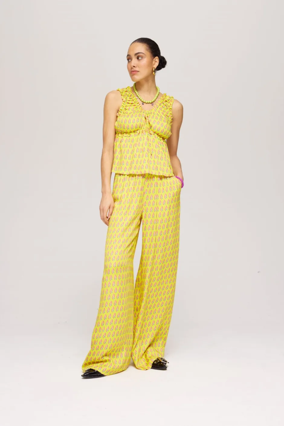 Deze vrolijke broek van Harper & Yve heeft een wide leg model