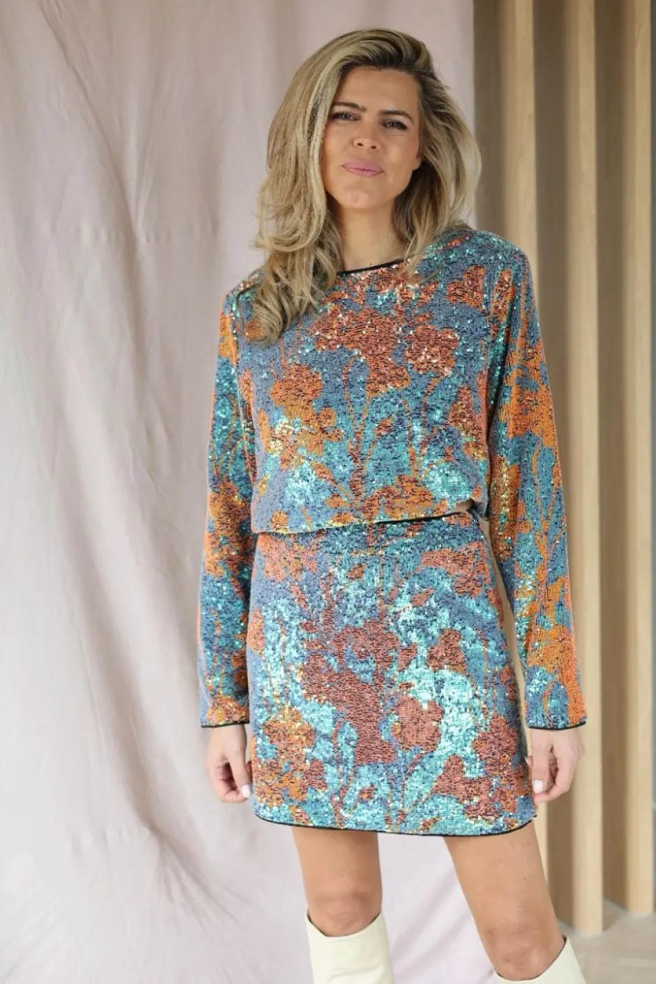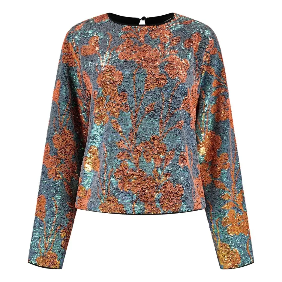 Prachtige pailletten top met subtiel patroon en loose fit