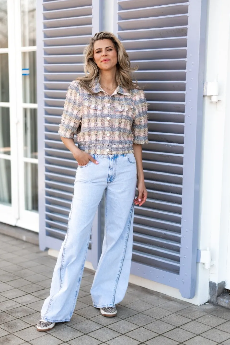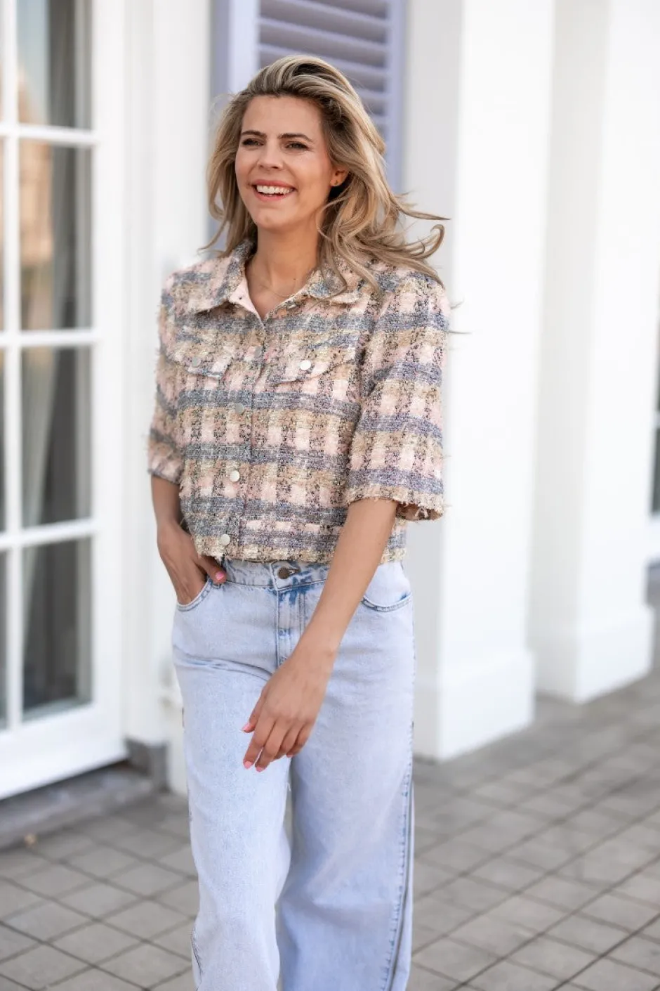 鈾é achtige stof met een geblokte print en een lurexdraadje鈾