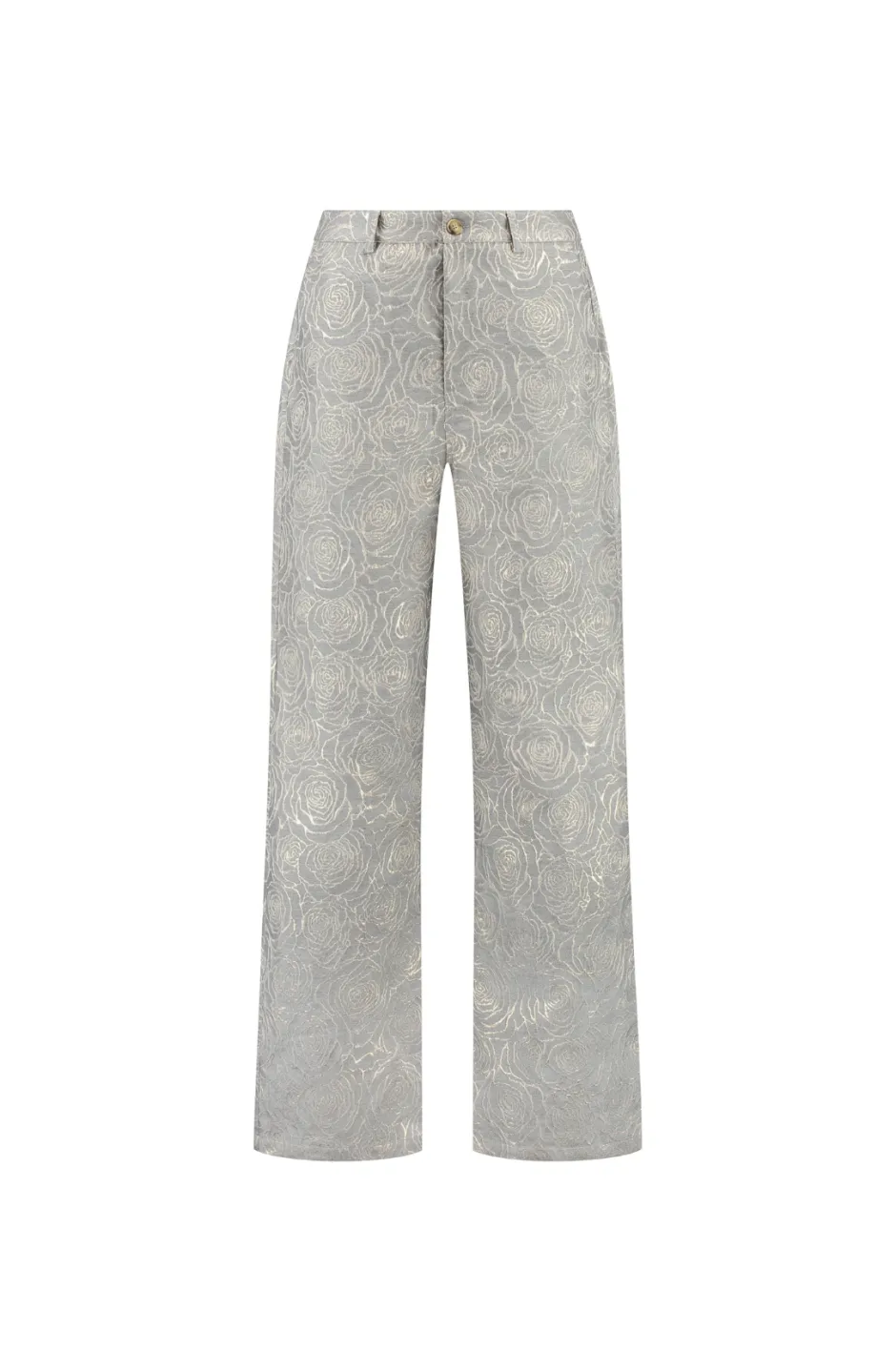 馃┓ Deze prachtige zilverkleurige broek heeft een all-over rozenprint