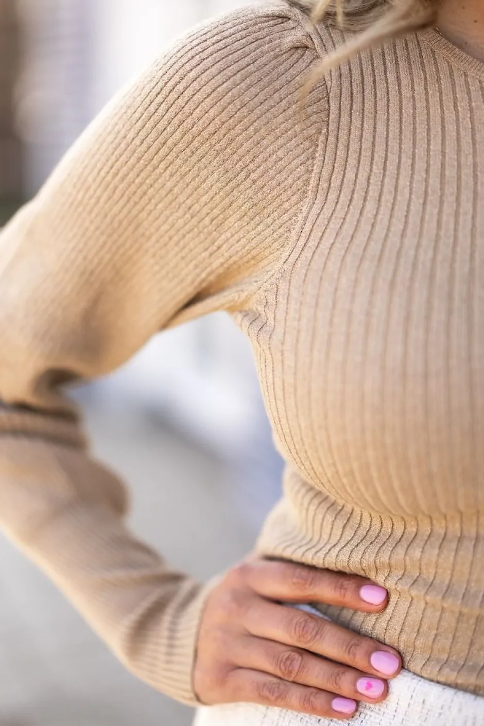 De top is gemaakt van een zachte ribstof met een lurexdraadje die zorgt voor een subtiele glitter.