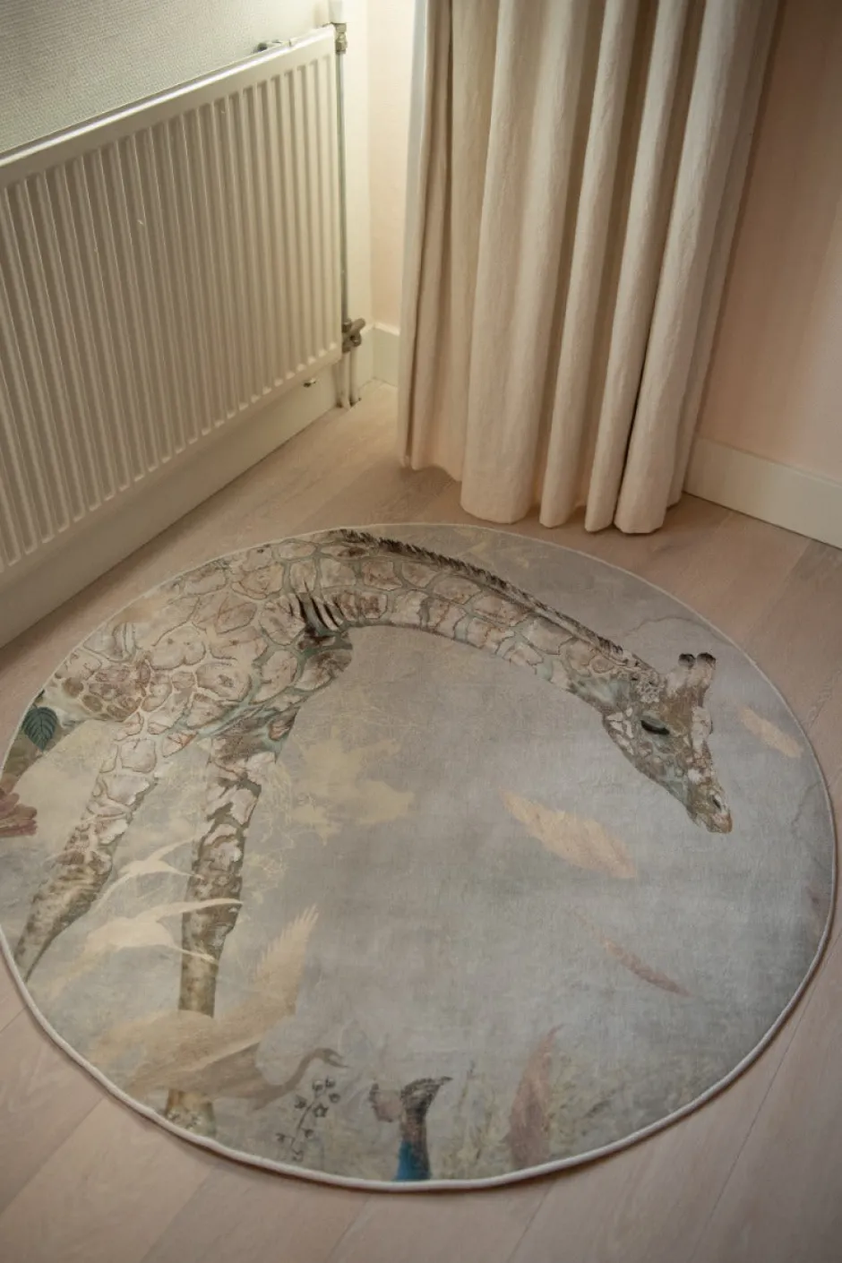 Het speelkleed staat heel mooi bij bijvoorbeeld behang giraffe of behang Morning bird.