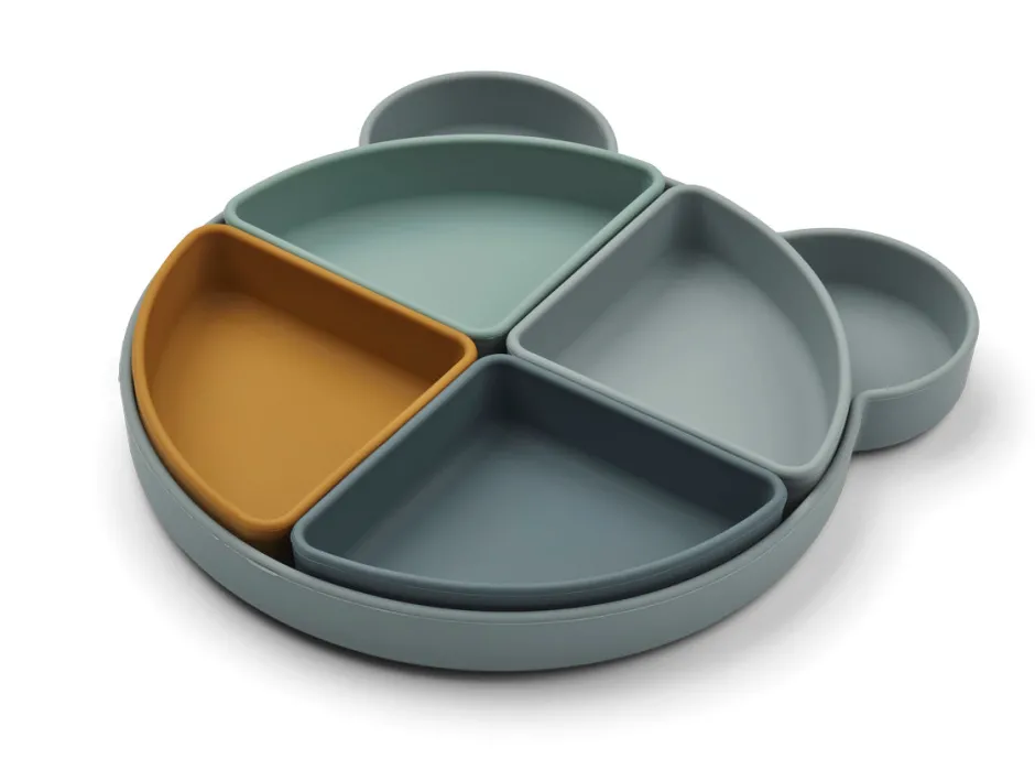 Hoe leuk én handig is deze set van een bord en 4 schaaltjes van het merk Liewood? Zo kun je het eten makkelijk verdelen in vakjes en wordt het eten een stuk leuker voor de kleintjes.